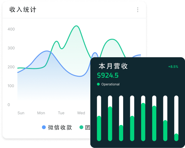 设备运作、各项配置、营收管理、账户管理、活动等功能齐全。